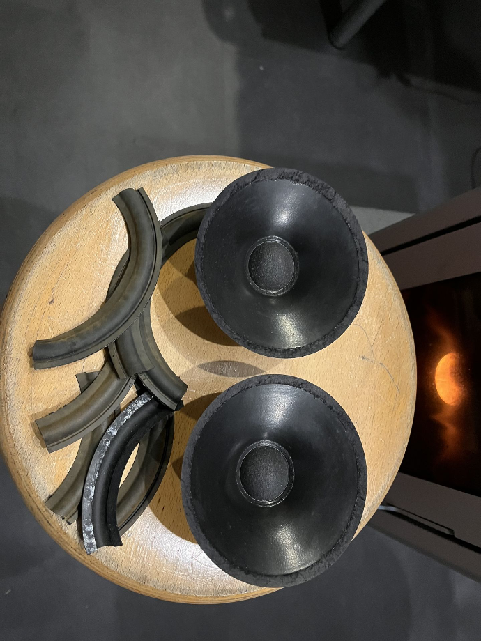 De superbes enceintes ASA (Atelier de Synergie Acoustique) sont arrivées dans un triste état à l'atelier, ayant été stockées dans de mauvaises conditions. Au regard de l'ampleur des travaux, ils seront détaillés sur plusieurs articles. Pour commencer : re conditionnement total des hauts parleurs de graves, endommagés par l'osmose de l'aluminium, avec changements des suspensions devenues raides. La suite au prochain épisode !