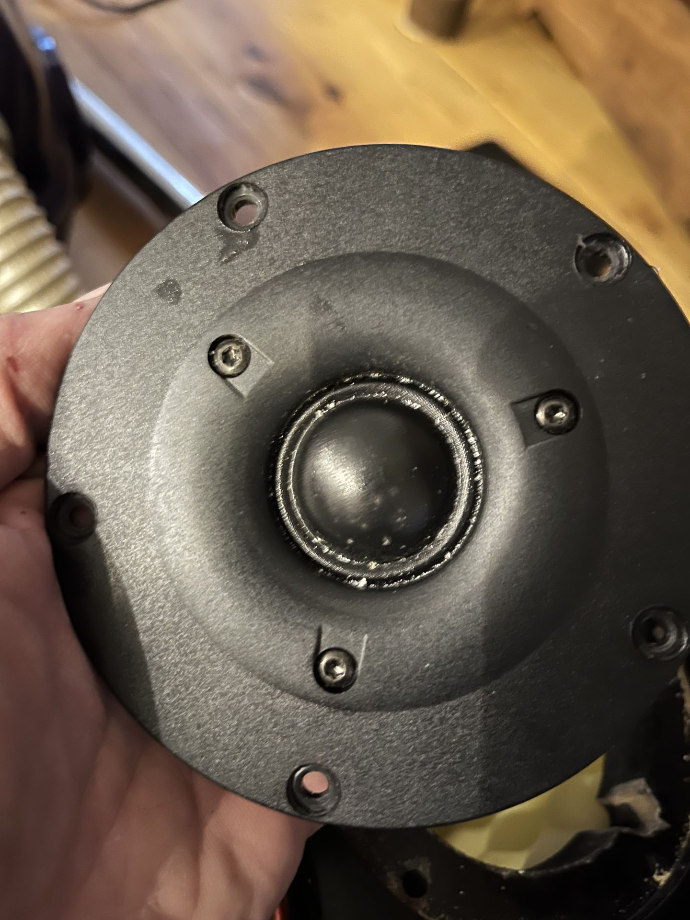 En attendant les suspensions et les caches poussière, changement des équipages mobiles flambés... Comme ils sont au Ferrofluid, le nettoyage est rigoureux et fastidieux. Les vis de fixations rouillées sont également traités, les borniers baladeurs sont fixés. Nettoyage et réparations des grilles également au programme...
