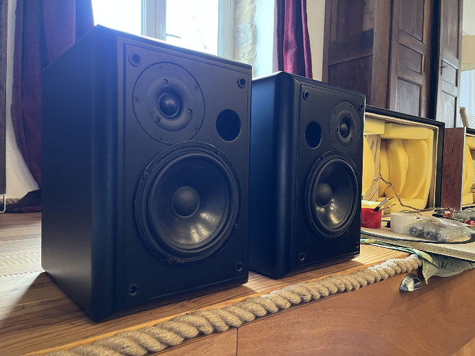 Equipages mobiles de tweeters changés, filtres reconditionnés (noyés dans la colle, un vrai bonheur...), remontage de l'ensemble. Les vis de fixations ont été également reprises (rouille). L'écoute : remarquable, tout simplement, une scène généreuse, un très bon équilibre tonal, des enceintes pas fatigantes sur une longue écoute et un punch redoutable.